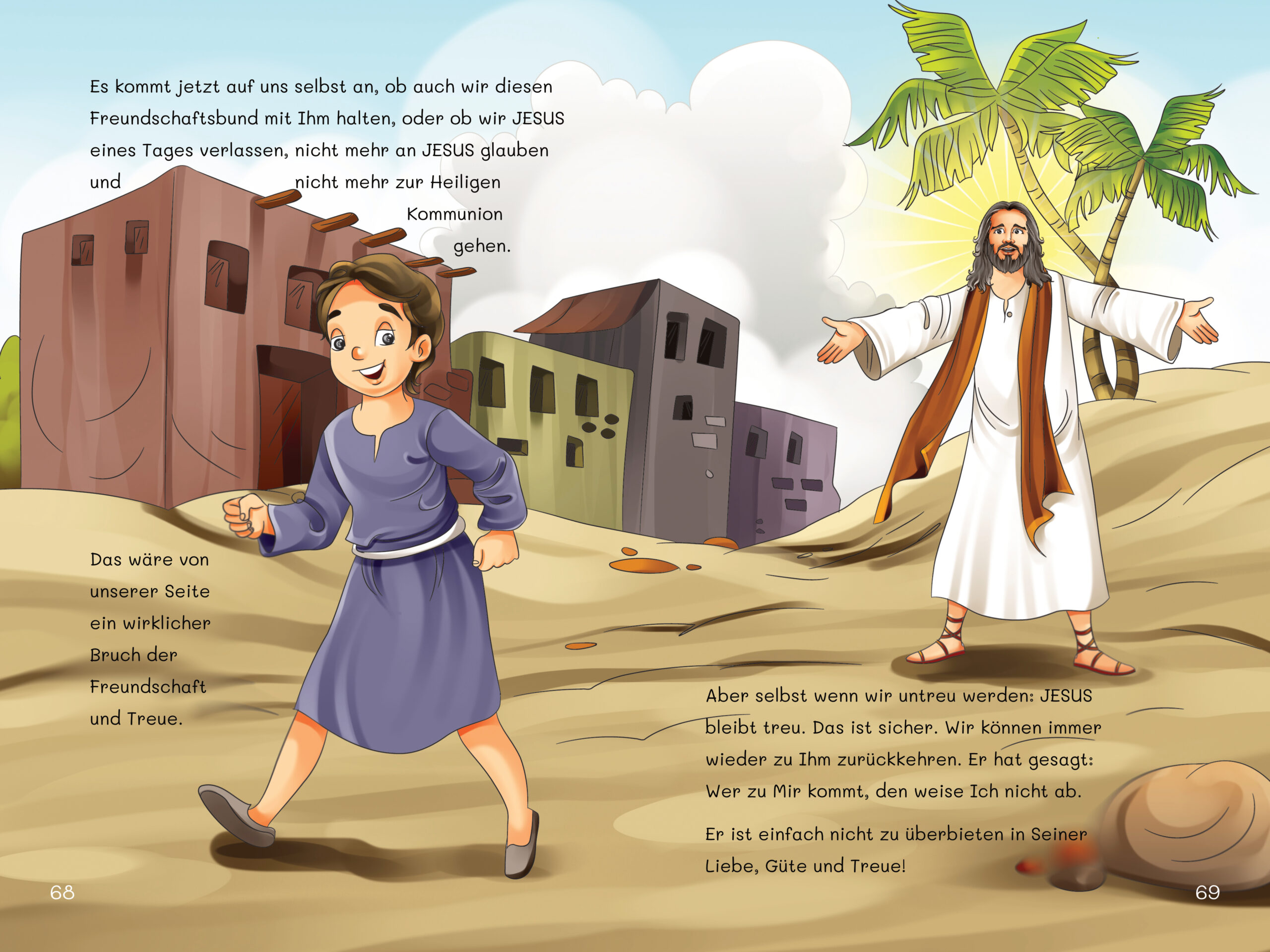 Sie sind auf der Suche nach einem unvergesslichen Geschenk zur Erstkommunion? Sie benötigen eine zuverlässige und kindgerechte Begleitung für die Vorbereitung auf das große Ereignis? Oder sind Sie ein wenig “aus der Übung” und sollen jetzt einem Erstkommunionkind die Wandlung von Brot und Wein in Leib und Blut von JESUS erklären?